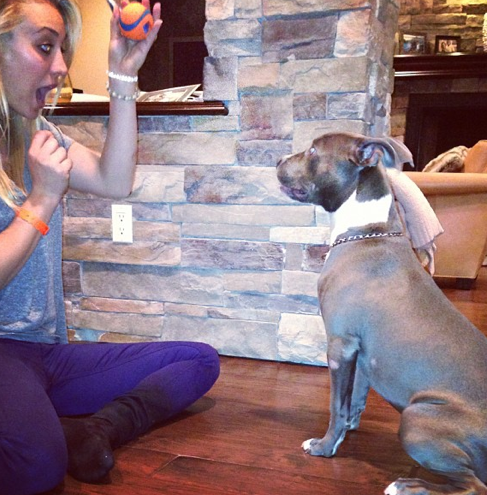 This week Kaley was on The Ellen Degeneres Show in a repeat from January, and she shared a really cute video of her pit bull. I don't want to spoil the surprise but click the picture below to see for yourself.